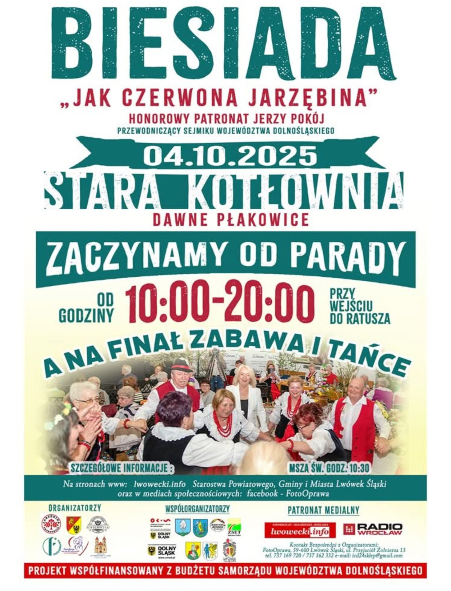 W sobotę 4 października w Lwówku Śl. odbędzie się wyjątkowe spotkanie miłośników kultury ludowej. Biesiada Ludowa ma na celu pielęgnowanie bogactwa lokalnej tradycji, integrację społeczności oraz wspólne celebrowanie muzyki, śpiewu i dobrego jedzenia. O godz. 10:00 na Górnym Rynku pod lwóweckim ratuszem, zaprezentują się zespoły ludowe. Następnie, w asyście śpiewu i radosnego nastroju, grupa przejdzie do kościoła parafialnego pw. Wniebowzięcia Najświętszej Maryi Panny, by wziąć udział w mszy świętej. Około godziny 12:15 oficjalna część Biesiady przeniesie się do Starej Kotłowni w d. Płakowicach, gdzie zaprezentują się lokalne zespoły. Kulminacją będzie część wieczorna, taneczno-rozrywkowa, zaplanowana po godzinie 16:00, z muzyką łączącą tradycyjne motywy i ludowe aranżacje. Zapraszmay w imieniu Organizatorów. Gmina i Miasto Lwówek Śląski jest Partnerem wydarzenia.