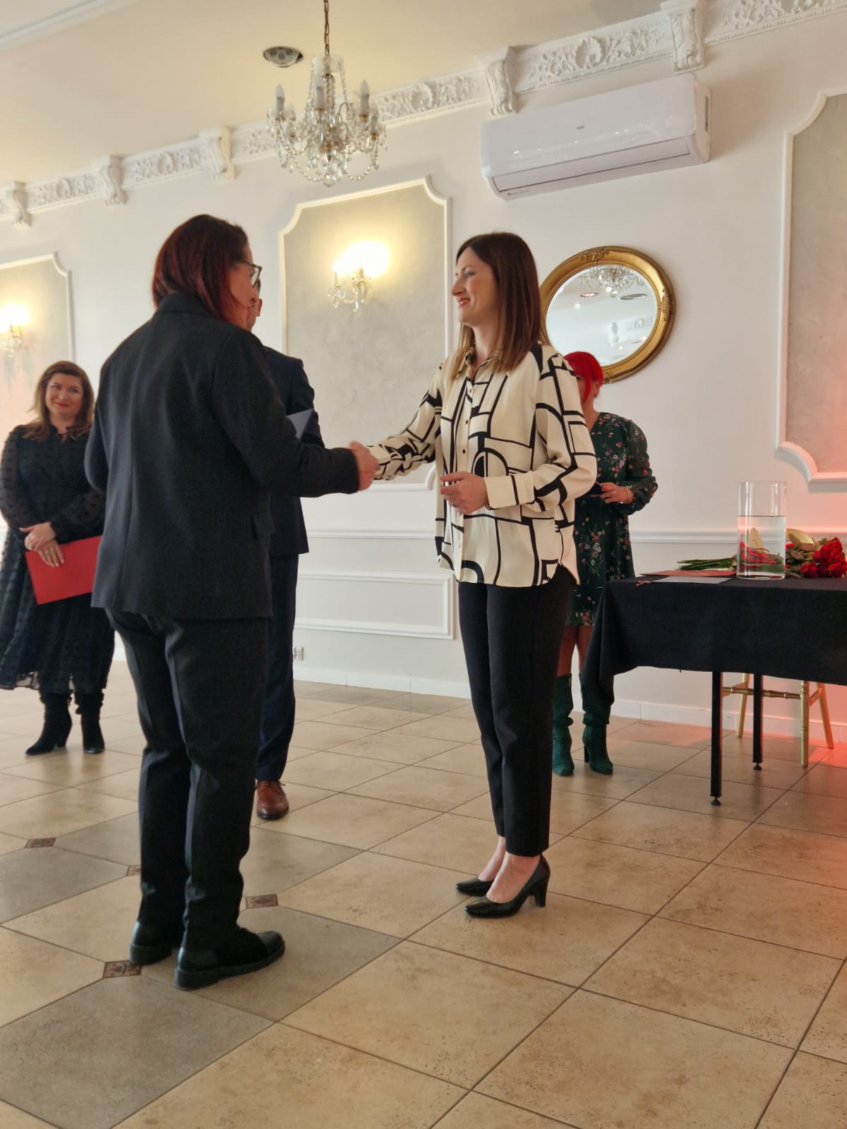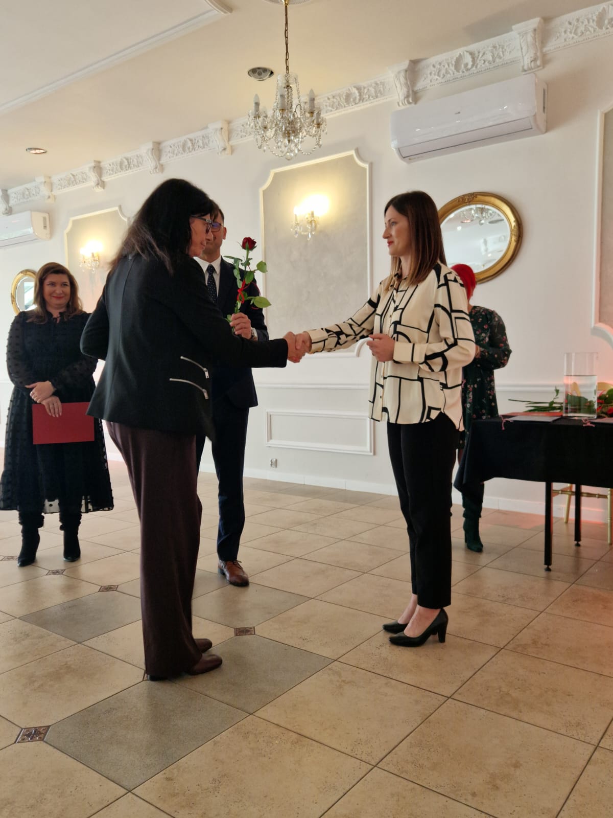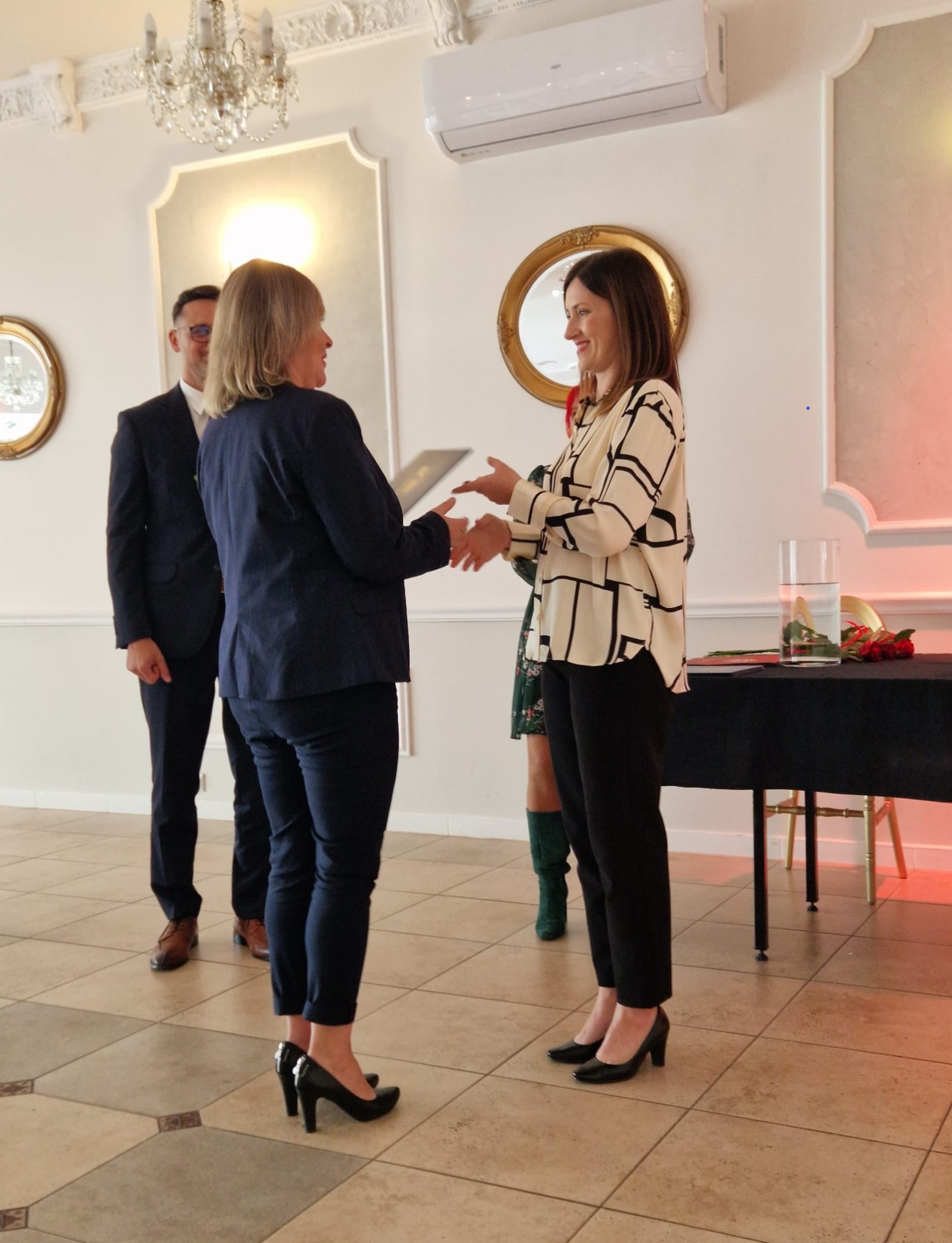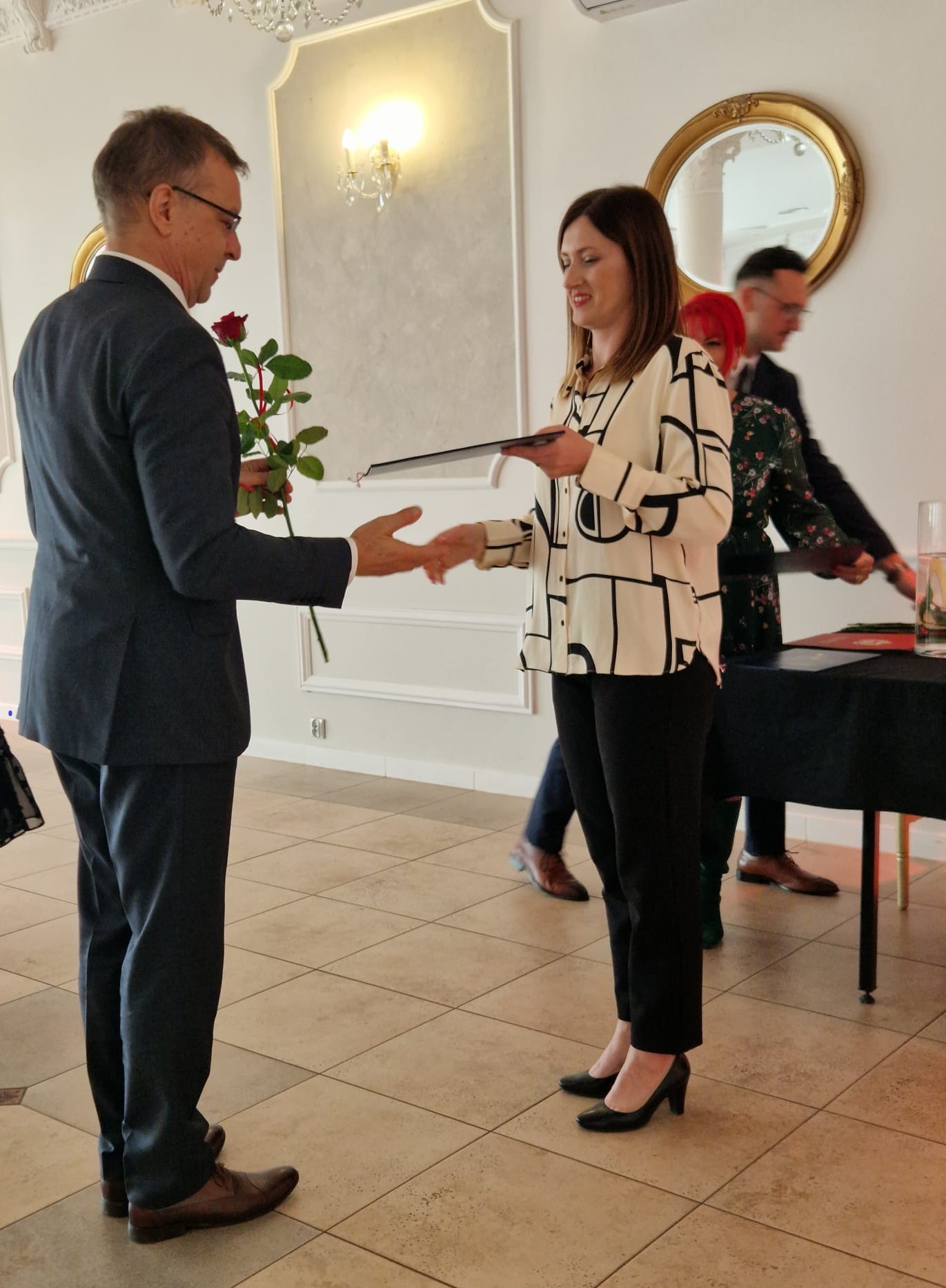 Z okazji Dnia Edukacji Narodowej w dniu 13 października 2025 r. podczas uroczystego spotkania z nauczycielami i z dyrektorami naszych przedszkoli i szkół podstawowych Burmistrz Gminy i Miasta Lwówek Śląski Dawid Kobiałka złożył najserdeczniejsze życzenia wszelkiej pomyślności dziękując za trud i poświęcenie wykazywane każdego dnia w odpowiedzialnej i niełatwej pracy pedagogicznej. Podczas uroczystości Zastępca Burmistrza Gminy i Miasta Lwówek Śląski Aleksander Fuławka wraz z Przewodniczącą Rady Miejskiej Lwówek Śląski Magdaleną Lewandowską w obecności Naczelnika Wydziału Organizacyjno-Oświatowego Natalii Szmulewicz oraz inspektora ds. oświaty Justyny August i referenta ds. oświatowo-społecznych Anny Marut dokonał uroczystego wręczenia nagród Burmistrza Gminy i Miasta Lwówek Śląski.