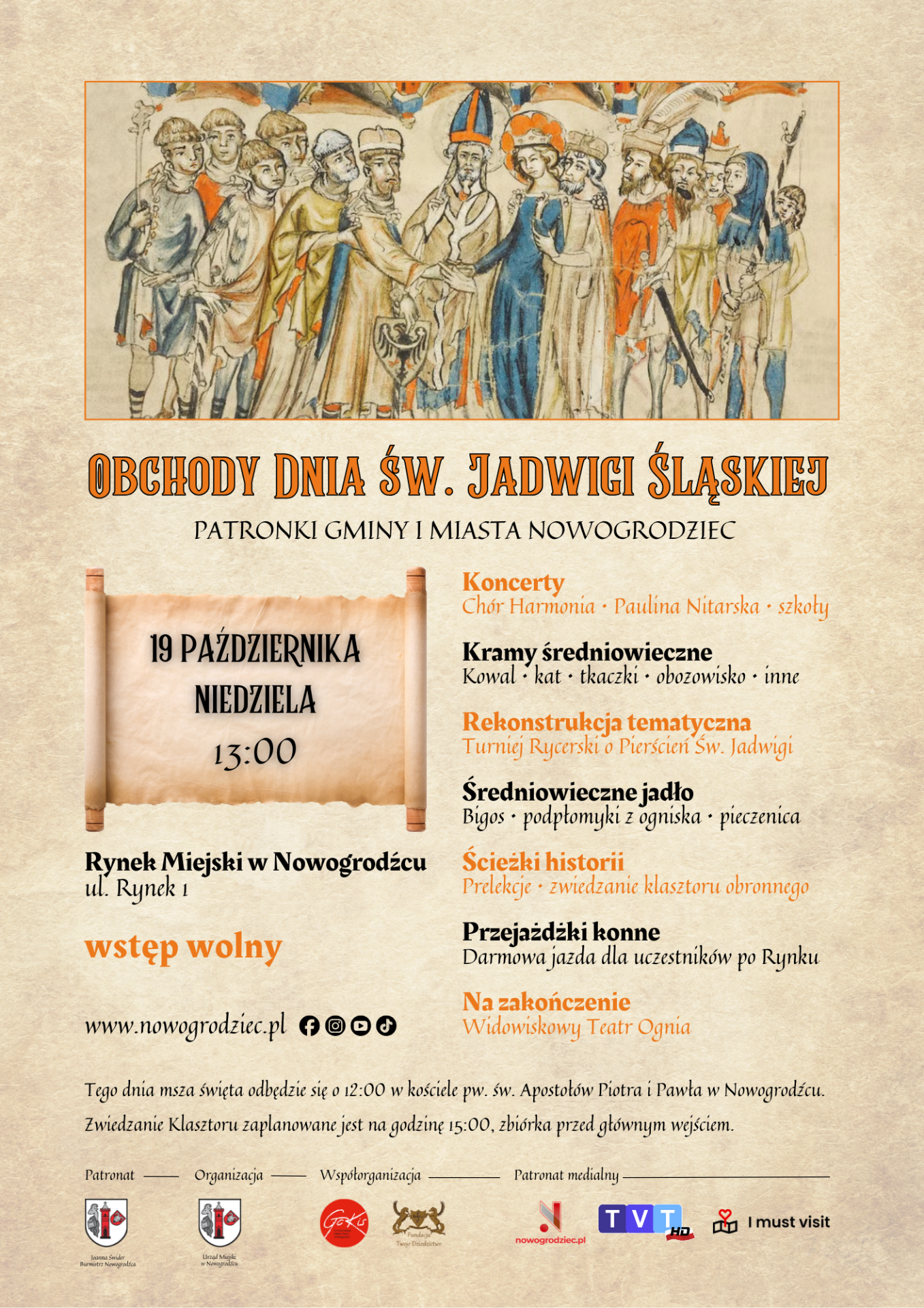 Mieszkańcy Gminy Lwówek Śląski serdecznie zachęcamy do udziału w wyjątkowym wydarzeniu organizowanym przez naszych sąsiadów – Gminę i Miasto Nowogrodziec! Już 19 października na nowogrodzieckim Rynku odbędzie się Święto Św. Jadwigi Śląskiej, patronki miasta i gminy.
